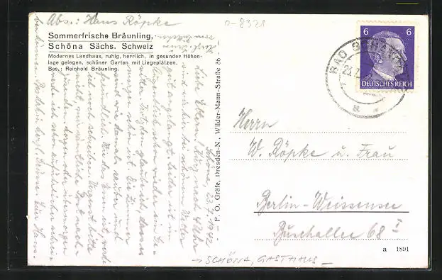 AK Schöna /Sächs. Schweiz, Gasthaus Bräunling