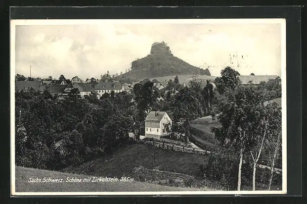 AK Schöna /Sächs. Schweiz, Teilansicht mit Zirkelstein