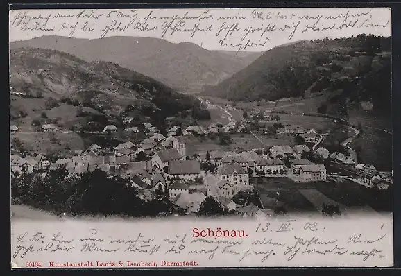 AK Schönau / Wiesenthal, Totalansicht von oben