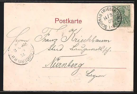 alte Ansichtskarte, gelaufen 1902, Eckknicke li., guter Zustand