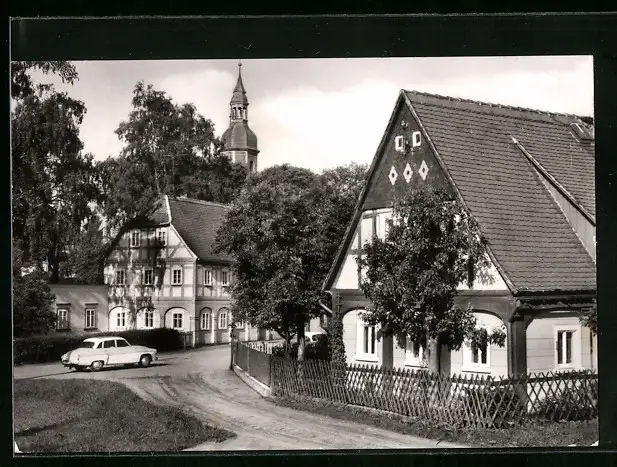 AK Schönbach, Erholungsort, Strassenpartie mit Auto