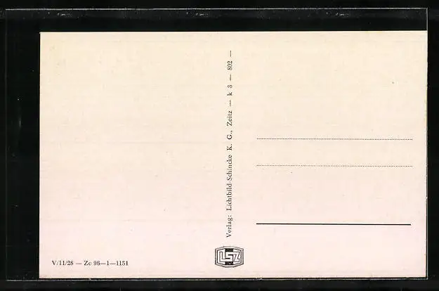 Personenbezogene Daten auf der Rückseite der Karte wurden durch blauen Textmarker unkenntlich gemacht. Die blauen Stellen sind auf die Vorderseite durchgeweicht und wirken sich negativ auf das Postkartenfoto aus