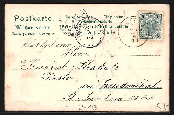 alte Ansichtskarte, gelaufen 1903, guter Zustand