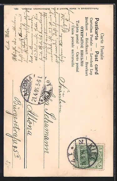 alte Ansichtskarte, gelaufen 1905, Stempelspur, guter Zustand