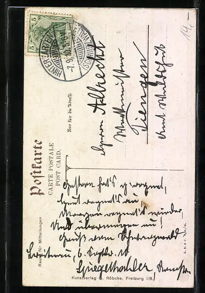 alte Ansichtskarte, gelaufen 1910, Stempelspur, guter Zustand