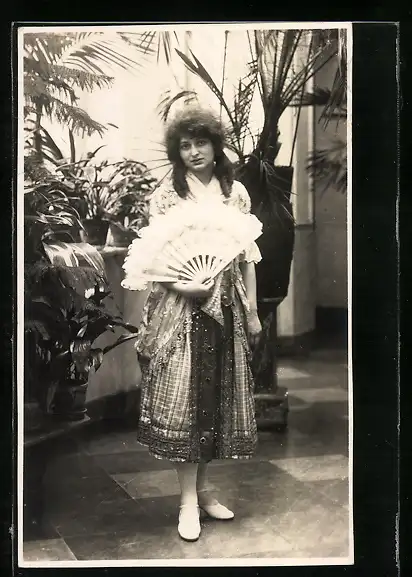 AK Schöne junge Frau im Kleid mit Fächer in der Hand