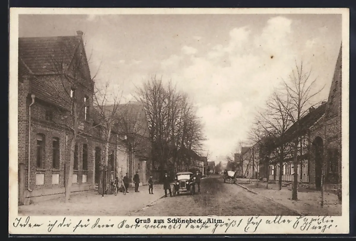 AK Schönebeck / Elbe, Strassenpartie mit Automobil