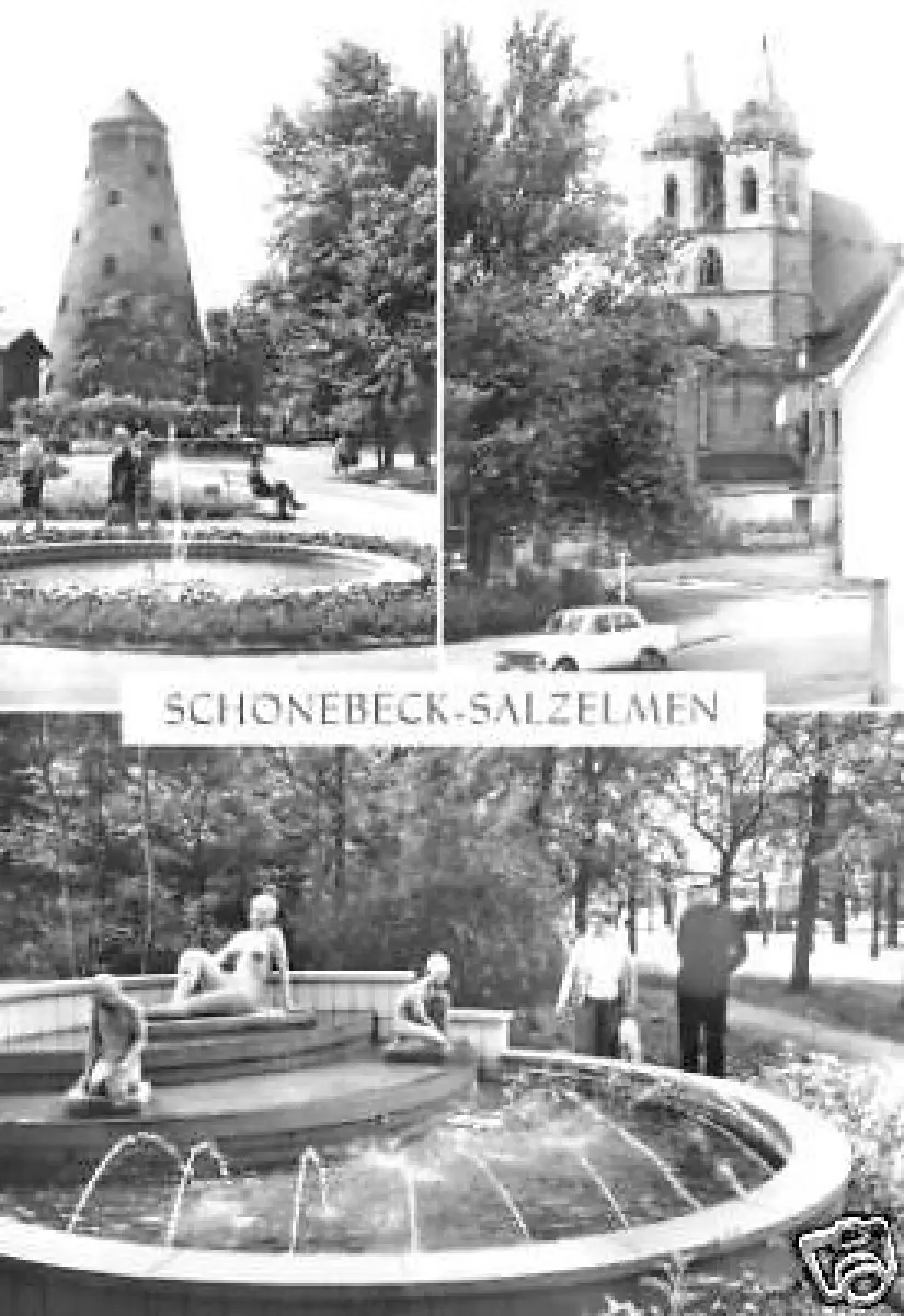 Ansichtskarte Schönebeck - Salzelmen drei Abb., u.a. Johanniskirche Erhaltung I-II ungelaufen Druckvermerk: 1977 Herstellungsland: DDR Verlag: Planet-Verlag Berlin - 03 07 14 024M