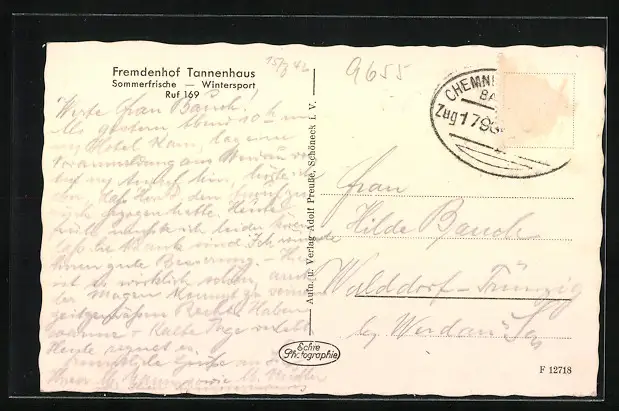 alte Ansichtskarte, gelaufen 1942, Briefmarke entfernt, guter Zustand
