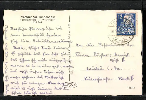 AK Schöneck / Vogtl., Fremdenhof Tannenhaus