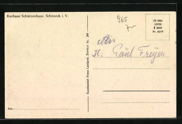 AK Schöneck i. V., Kurhaus Schützenhaus