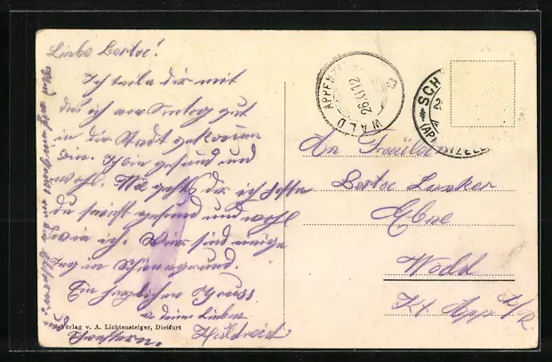 alte Ansichtskarte, gelaufen 1912, Briefmarke entfernt, Eckknick re. unten, guter Zustand