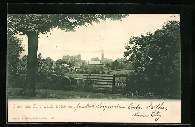 AK Schönwalde i. Holst., Ortsansicht mit Kirche