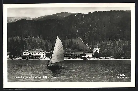 AK Scholastika am Achensee, Segelschiff vor dem Ort