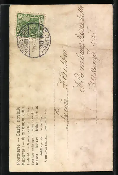 alte Ansichtskarte, gelaufen, Bugspuren mittig, guter Zustand