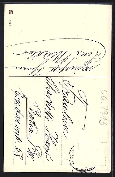 Personenbezogene Daten auf der Rückseite der Karte wurden durch blauen Textmarker unkenntlich gemacht. Die blauen Stellen sind auf die Vorderseite durchgeweicht und wirken sich negativ auf das Postkartenfoto aus
