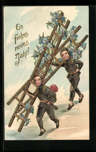 AK Schornsteinfeger mit Leitern wünschen ein frohes neues Jahr