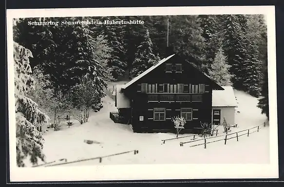 AK Schottwien, Die Hubertushütte am Sonnwendstein im Winter
