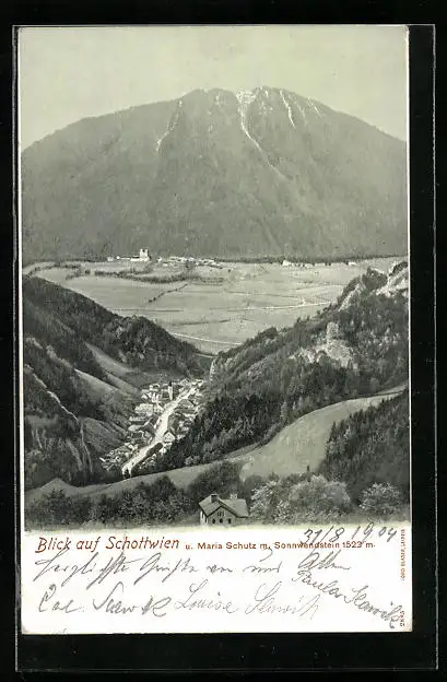 AK Schottwien, Ortsansicht mit Maria Schutz und Sonnwendstein