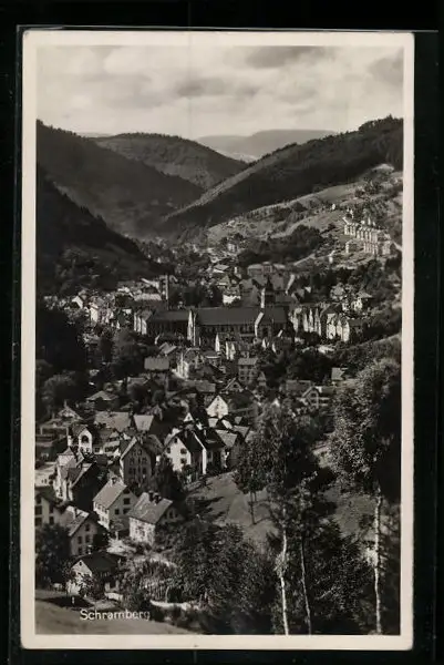 AK Schramberg, Ortsansicht mit Fernblick aus der Vogelschau