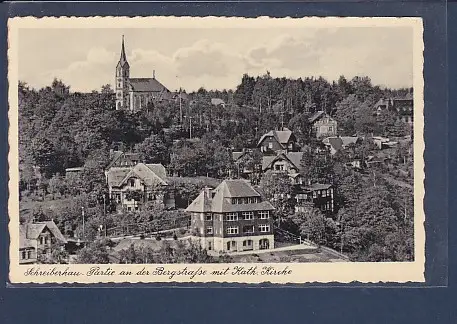 AK Schreiberhau Partie an der Bergstraße mit Kath. Kirche, nicht gelaufen von ca. 1930