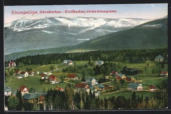 AK Schreiberhau-Weissbachtal, Panorama mit Schneegruben