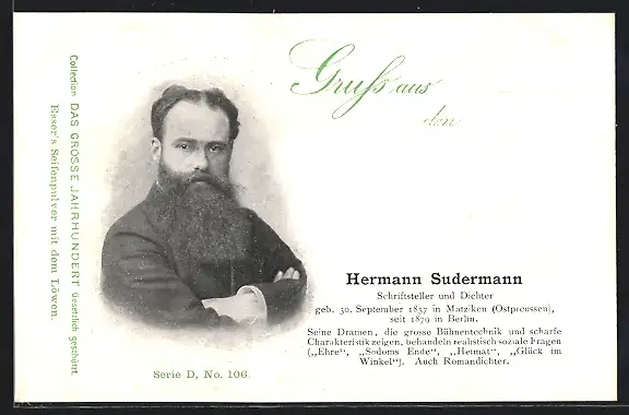AK Schrifsteller und Dichter Hermann Sudermann mit Vollbart