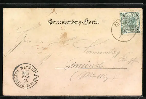 alte Ansichtskarte, gelaufen 1900, guter Zustand