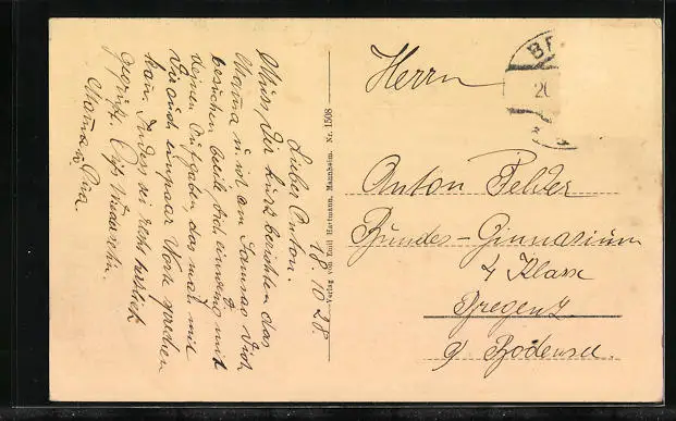 alte Ansichtskarte, gelaufen, Briefmarke entfernt, guter Zustand