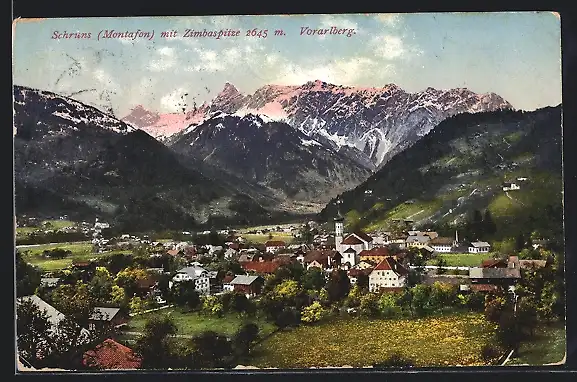 AK Schruns /Montafon, Ortsansicht mit Zimbaspitze