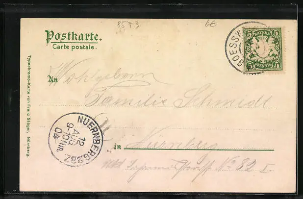alte Ansichtskarte, gelaufen 1904, guter Zustand