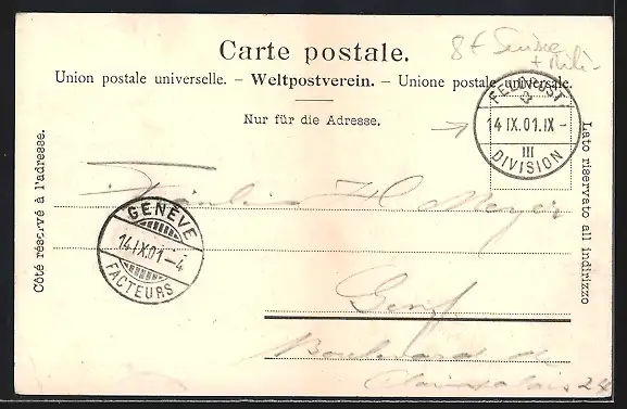 alte Ansichtskarte, gelaufen 1901, Eckknick unten re., guter Zustand