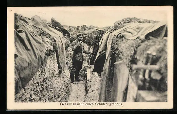 AK Schützengraben, Gesamtansicht eines Schützengrabens mit Soldat