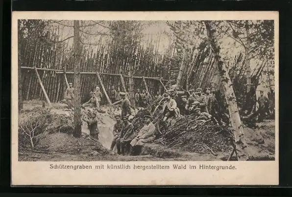 AK Schützengraben mit künstlich hergestelltem Wald im Hintergrunde