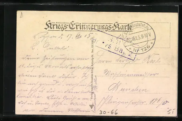 alte Ansichtskarte, gelaufen 1915 als Feldpost, guter Zustand