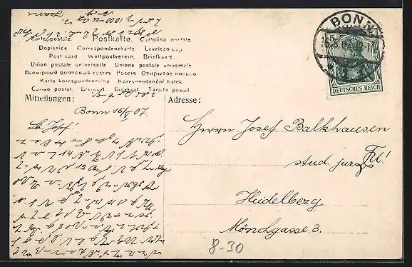 alte Ansichtskarte, gelaufen 1907, guter Zustand