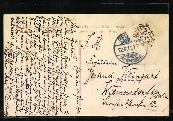 alte Ansichtskarte, gelaufen 1911, guter Zustand