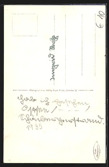 Personenbezogene Daten auf der Rückseite der Karte wurden durch blauen Textmarker unkenntlich gemacht. Die blauen Stellen sind auf die Vorderseite durchgeweicht und wirken sich negativ auf das Postkartenfoto aus