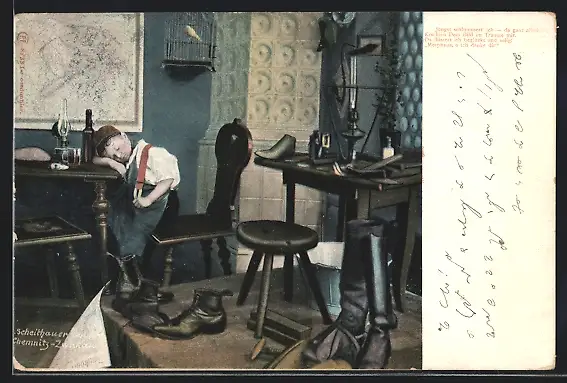 AK Schusterwerkstatt in Sachsen, Scherz, Schuhmacher