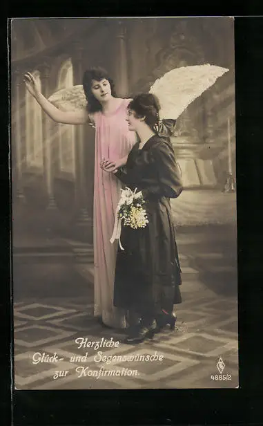 AK Schutzengel begleitet junge Dame zur Konfirmation