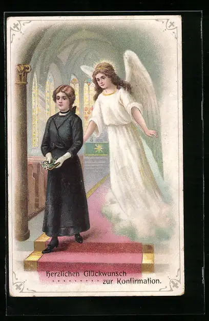 AK Schutzengel begleitet junge Dame zur Konfirmation