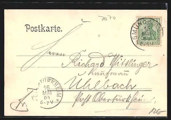 alte Ansichtskarte, gelaufen 1904, guter Zustand