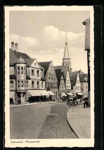 AK Schwabach, Königstrasse mit Kirche und Passanten
