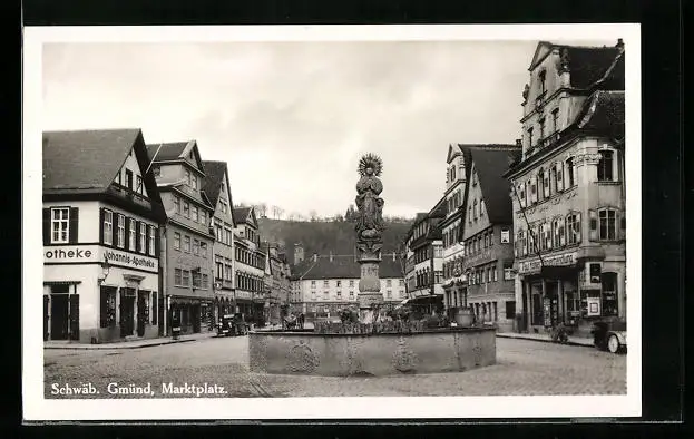 AK Schwäb. Gmünd, Marktplatz mit Brunnen