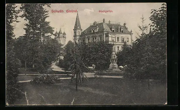 AK Schwäb. Gmünd, Stadtgarten mit Denkmal