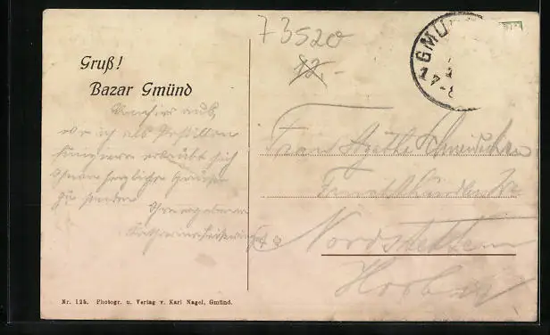 alte Ansichtskarte, gelaufen, Briefmarke tw. entfernt, rückseitig Oberflächenschaden, Bugspur li. unten, minimaler Einriss unten mittig, guter Zustand