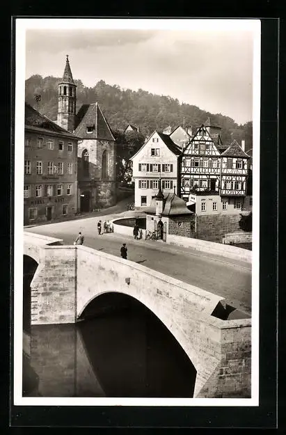 AK Schwäb. Hall, Rittersbrücke mit Fachwerkhäusern