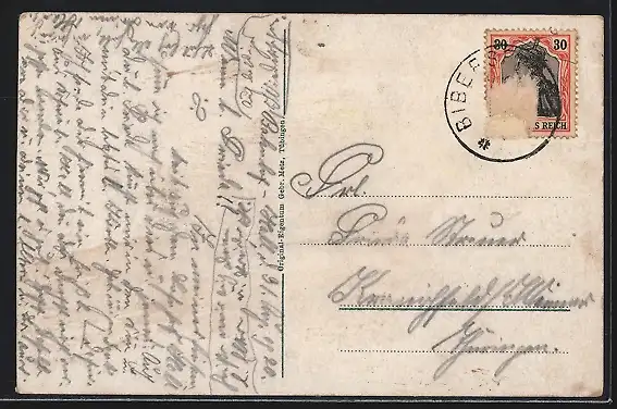 alte Ansichtskarte, gelaufen 1920, Briefmarke entfernt, rückseitig Oberflächenschaden, Eckknick re. oben, guter Zustand