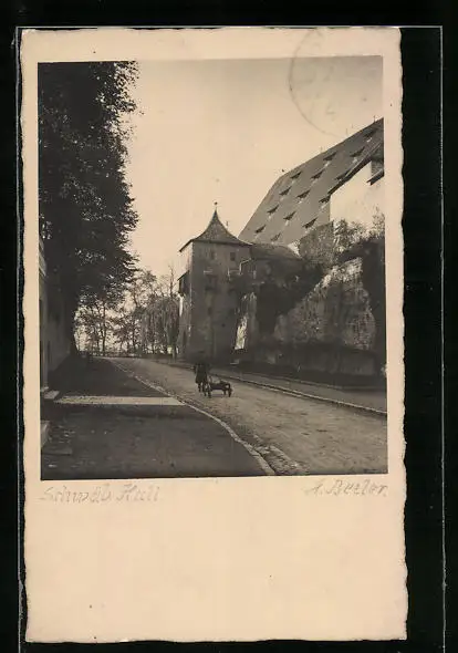 AK Schwäb. Hall, Strassenpartie mit Menschenfuhrwerk
