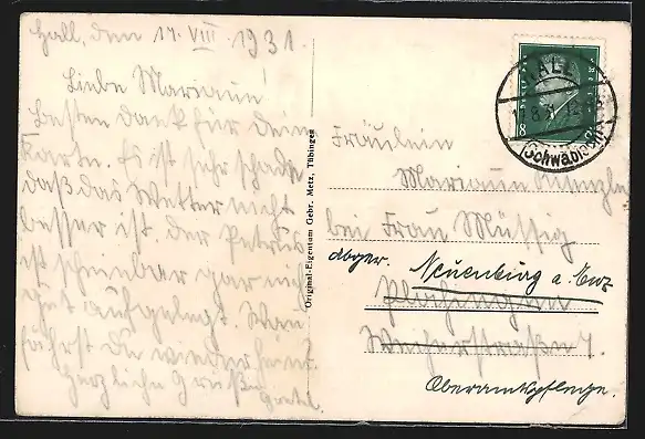 alte Ansichtskarte, gelaufen 1931, Stempelspur, guter Zustand